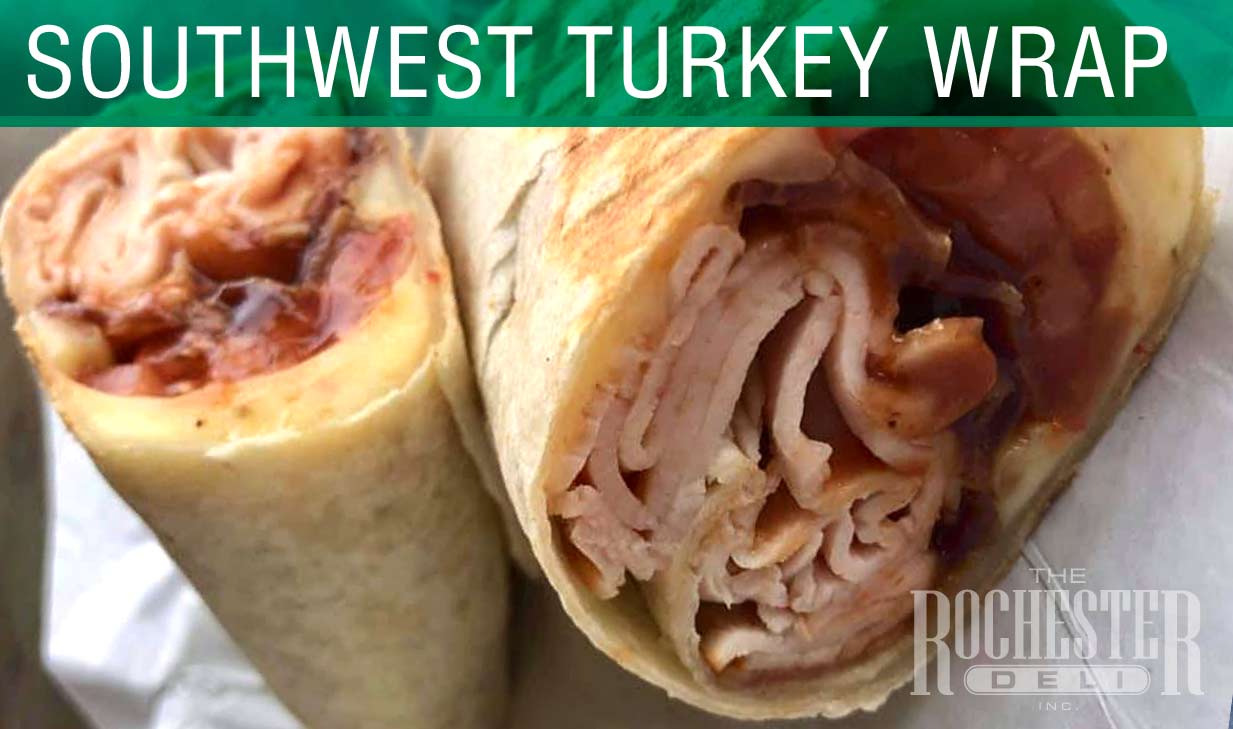 Our Southwest Turkey Wrap is packed with Turkey, bacon, pepper jack cheese, tomatoes and BBQ sauce grilled in a flour tortilla!